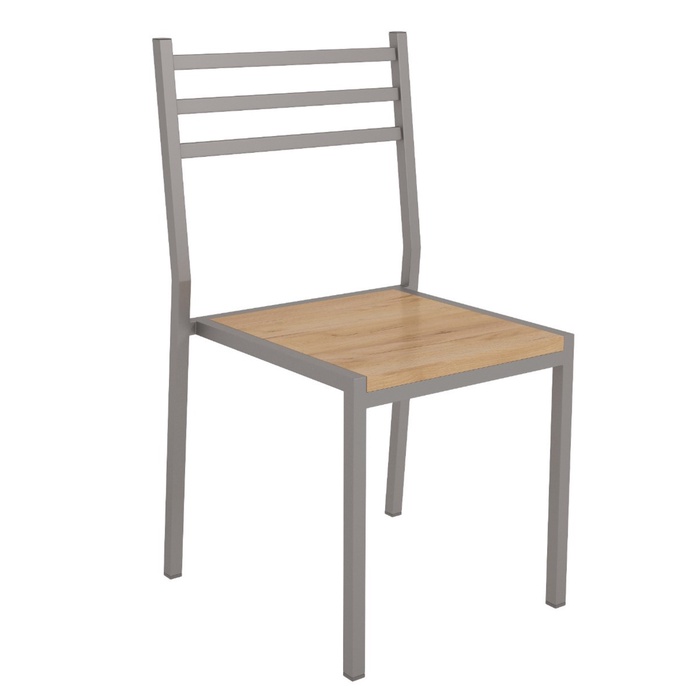 Стул на металлическом каркасе снабжён сиденьем из ЛДСП.