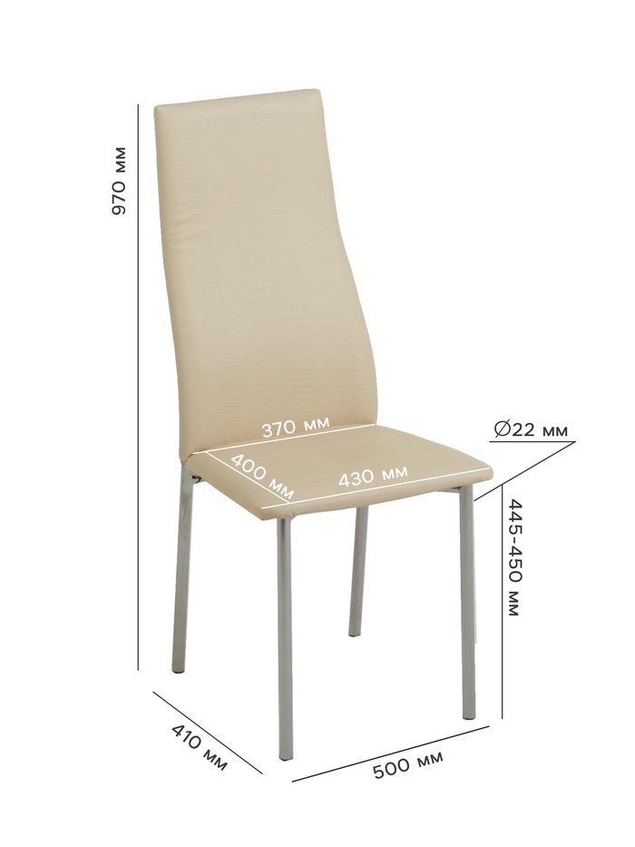 - Прочность и надежность: Металлический каркас и ножки выдерживают нагрузку до 120 кг, что делает стул долговечным и устойчивым.