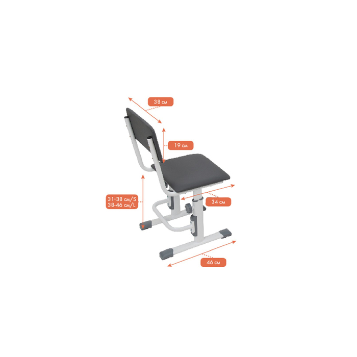 Вы легко и быстро сможете отрегулировать стульчик в необходимую высоту для школьника, регулируется в 3-х положениях: 38, 43, 46 см от пола. Стул Сити на сайте представлен в двух размерах: размер S — для ребенка ростом от 115 до 145 см., размер L — для ребенка ростом от 145 до 180 см.