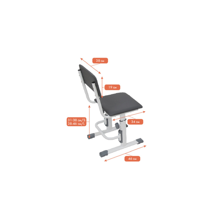 Вы легко и быстро сможете отрегулировать стульчик в необходимую высоту для школьника, регулируется в 3-х положениях: 38, 43, 46 см от пола. Стул Сити на сайте представлен в двух размерах: размер S — для ребенка ростом от 115 до 145 см., размер L — для ребенка ростом от 145 до 180 см.