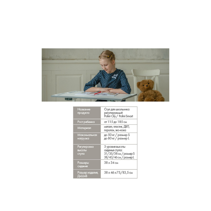 Регулируемый стул Polini City Smart растет вместе с вашим ребенком и подстраивается под его потребности.