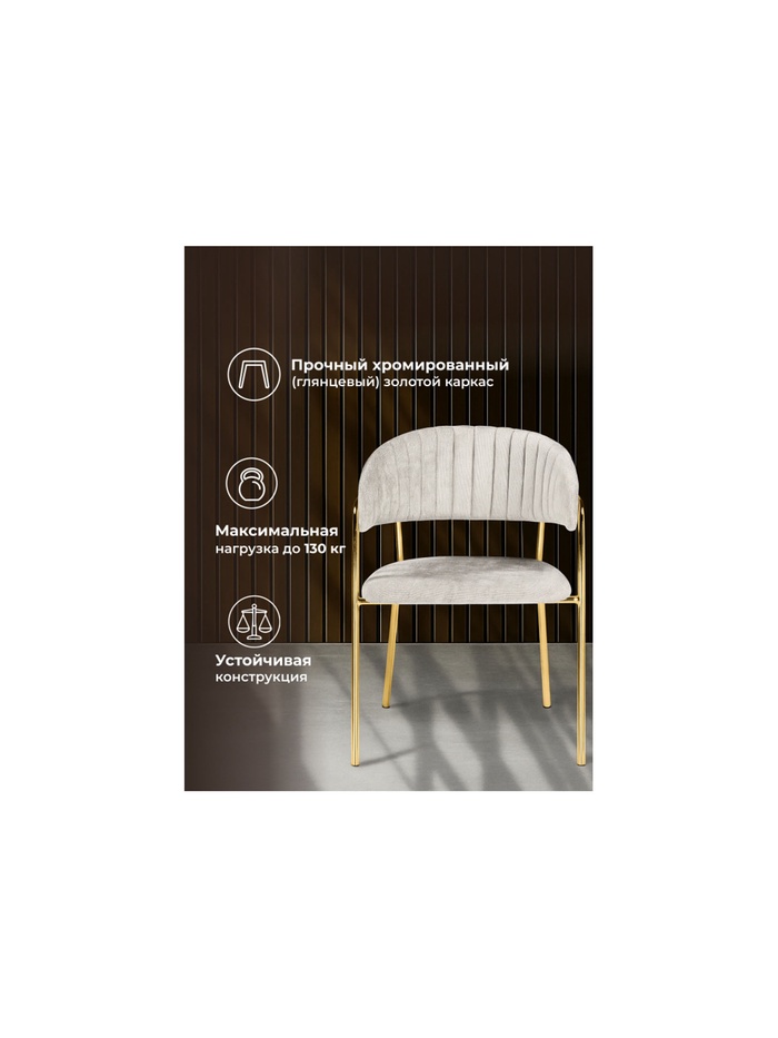 Стул на металлокаркасе Kamelia светло-серый / ткань золотые ножки