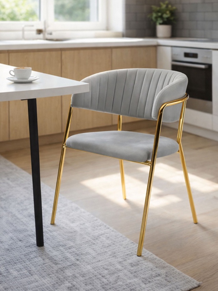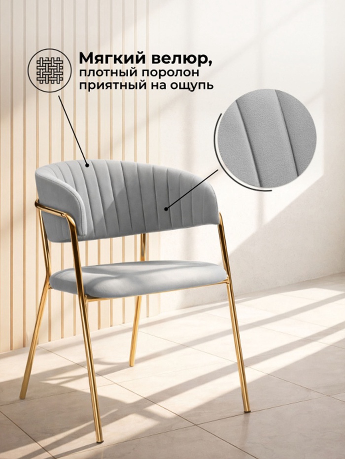Стул на металлокаркасе Kamelia велюр светло-серый / золотой
