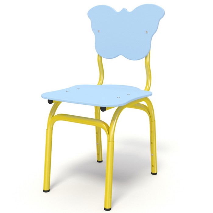 Стул «Бабочка» изготовлен из металлического каркаса, который состоит из трубы толщиной 16 и 18 мм. Каркас представляет собой прочную и устойчивую конструкцию, безопасную для детей.