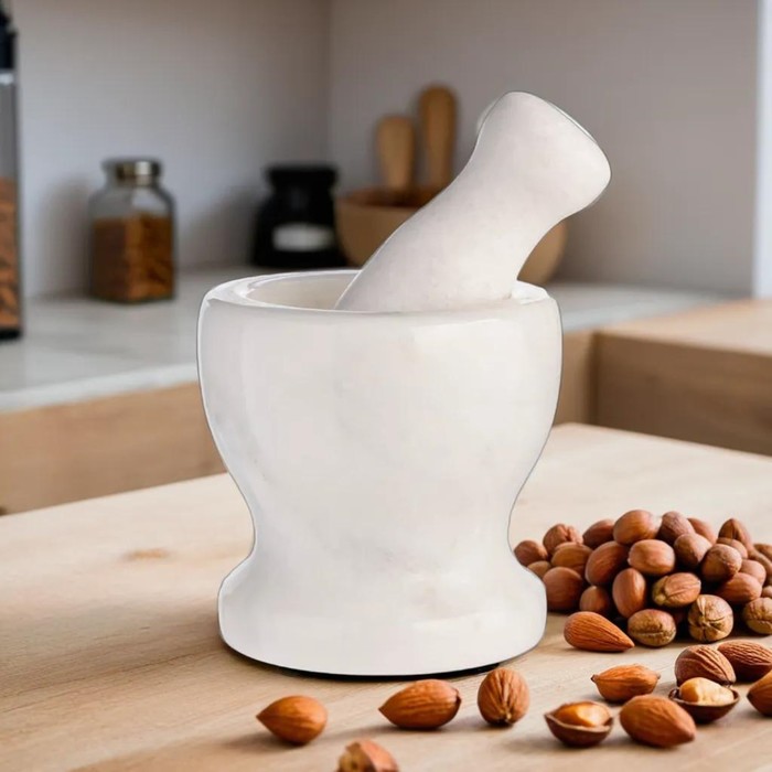 Ступка с пестиком — это универсальное кухонное приспособление, которое идеально подходит для измельчения, дробления и растирания специй, трав, зёрен, орехов, чеснока, таблеток, семян, соли и т. д.