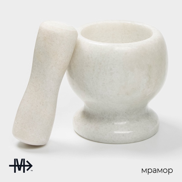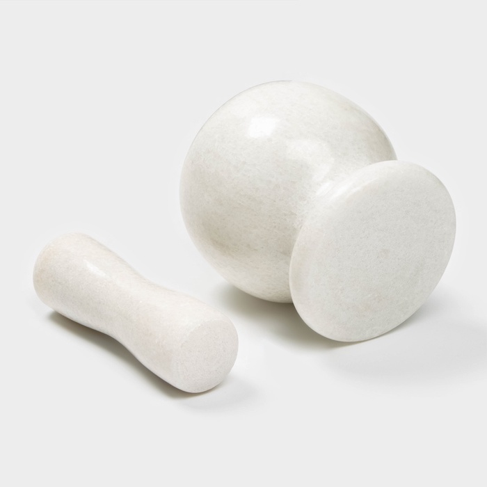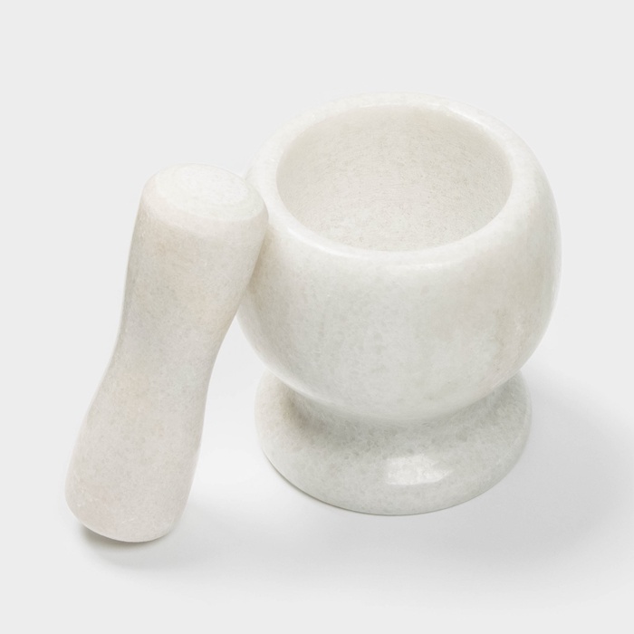 Ступка с толкушкой из натурального мрамора - это элегантное и функциональное кухонное приспособление, используемое для измельчения и приготовления различных специй, трав и пряностей.