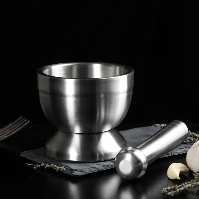 Ступка с толкушкой Доляна Steel, 10 см, нержавеющая сталь