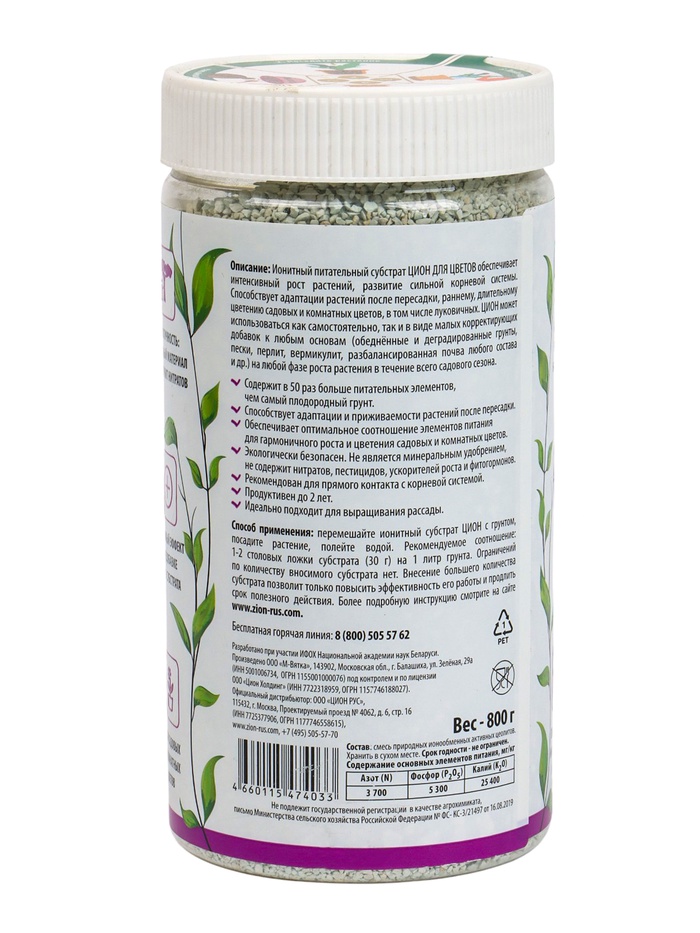 Ионитный субстрат ZION - это натуральная комплексная добавка, которая содержит в себе все элементы питания, необходимые для гармоничного роста растения.
