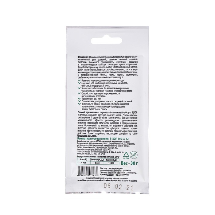 Ионитный субстрат ZION - это натуральная комплексная добавка, которая содержит в себе все элементы питания, необходимые для гармоничного роста растения.