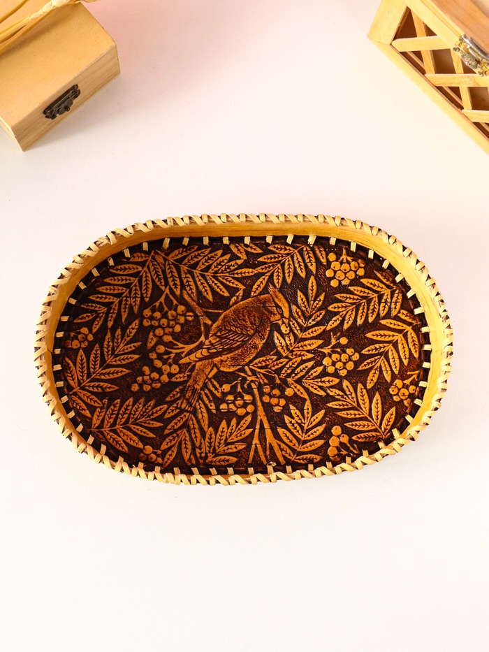 Сухарница традиционная "Птичка в рябине", 23х15х4,5см, Береста