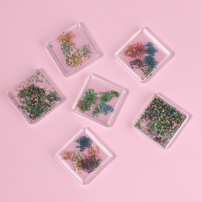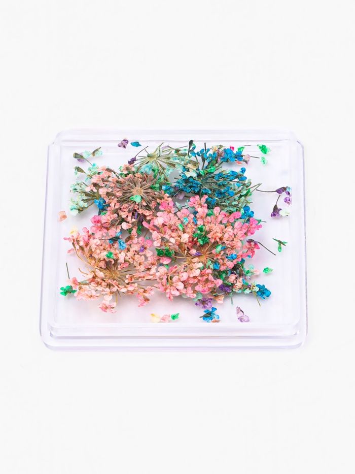 - 6 видов сухоцветов: каждая композиция принесет в ваш маникюр оригинальные текстуры и цветовые решения, позволяя создавать потрясающие сочетания.