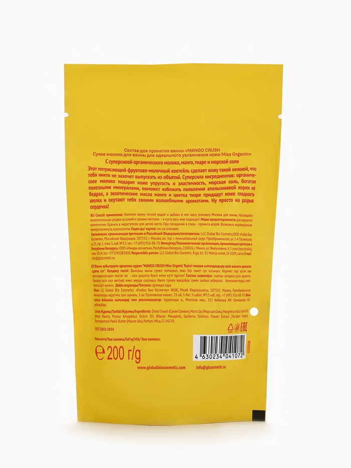 Состав: Dried Cream (Сухие Сливки), Maris Sal (Морская Соль), Mangifera Indica Seed Oil (Масло Манго), Prunus Amygdalus Dulcis Oil (Масло Миндаля), Gardenia Taitensis Flower Extract (Экстракт Тиаре), Butyrospermum Parkii Butter (Масло Ши), Parfum, Mica, CI 14270.