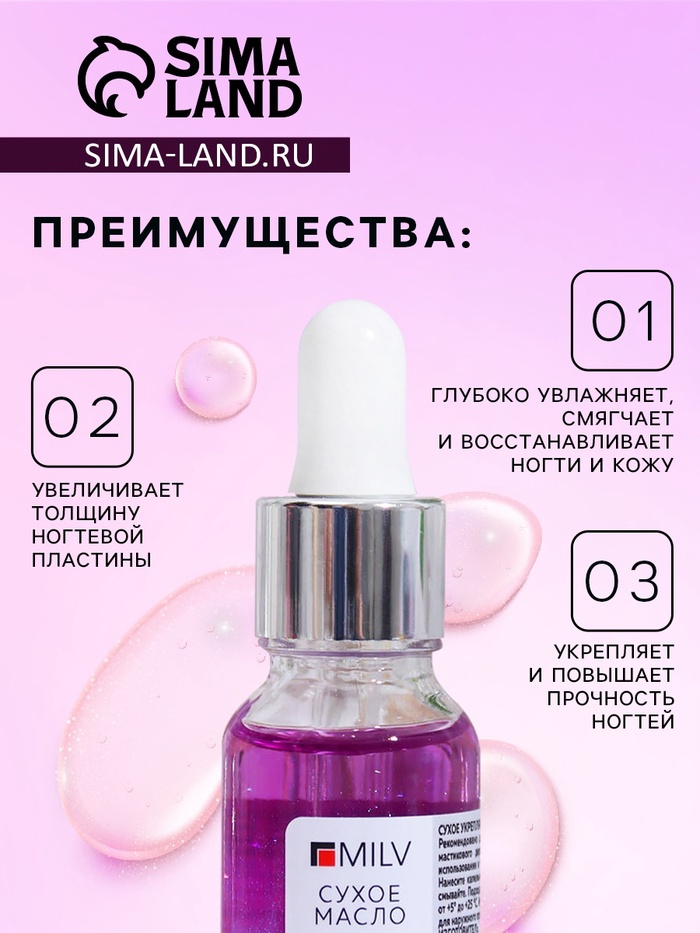 При ежедневном использовании масла в течение 1 месяца кутикула становится тонкой и мягкой, надолго приобретает ухоженный, здоровый, опрятный вид. Сладкий аромат «воздушного» лакомства Маршмэллоу доставит дополнительное удовольствие в процессе ухода за руками. Флакон масла укомплектован пипеткой, позволяющей точно и экономично наносить и расходовать продукт.