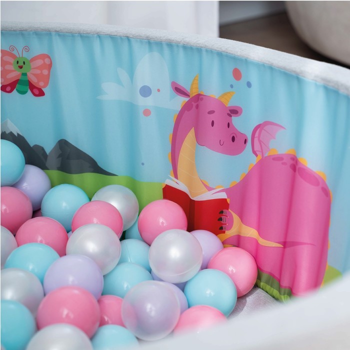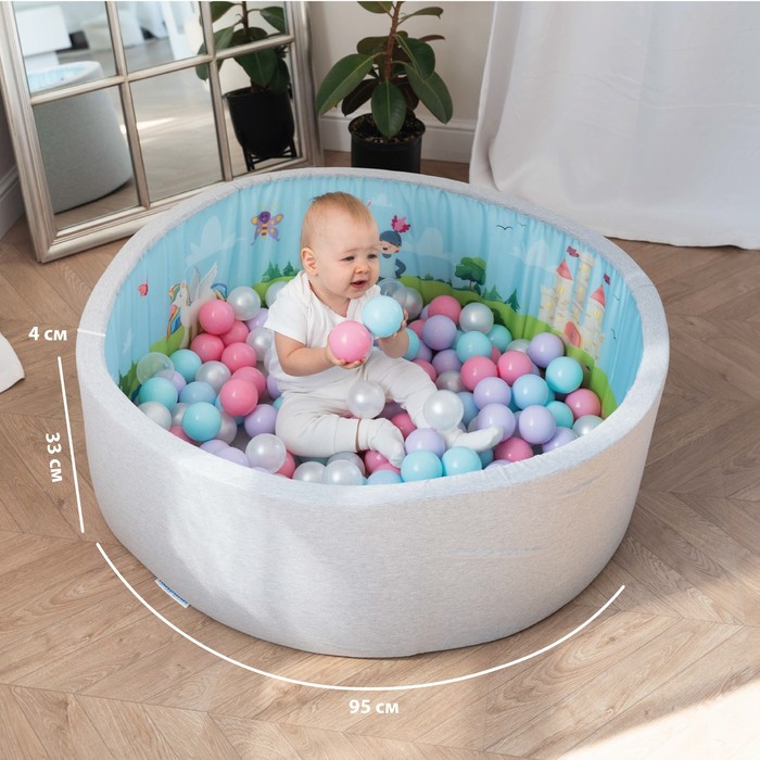Сухой бассейн «Принцессы» — это развлечение для дома или детской игровой комнаты. Используется как отдельная игровая зона, либо в сочетании с другими комплексами. Шарики расслабляют и массажируют тело ребёнка. Бассейн можно использовать в качестве манежа для малышей.