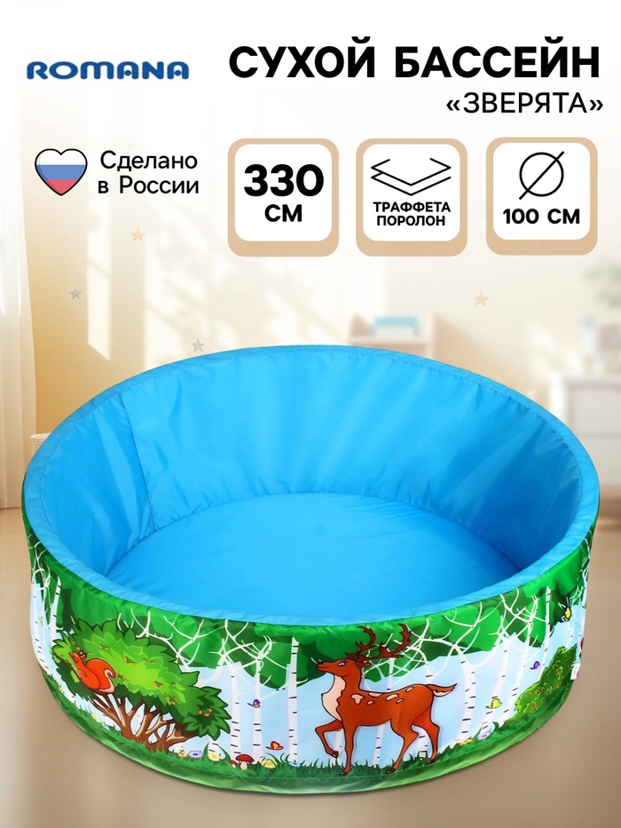 Сухой бассейн «Зверята» — это развлечение для дома или детской игровой комнаты. Используется как отдельная игровая зона, либо в сочетании с другими комплексами. Шарики расслабляют и массажируют тело ребёнка. Бассейн можно использовать в качестве манежа для малышей.