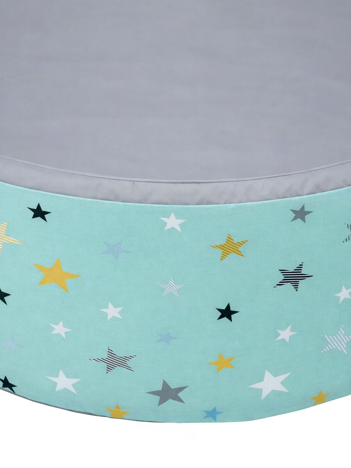 Сухой бассейн «Звёзды» — уютное игровое пространство с лаконичным дизайном и спокойной цветовой палитрой. Серый фон с рассыпью звёзд смотрится нейтрально и легко вписывается в интерьер детской комнаты, не перегружая пространство.