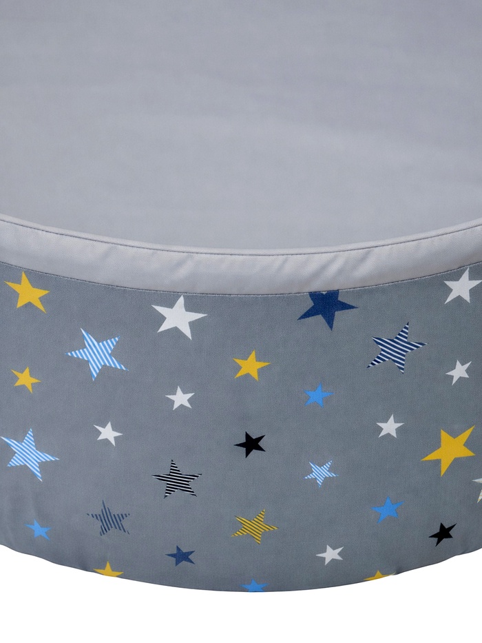 Сухой бассейн «Звёзды» — уютное игровое пространство с лаконичным дизайном и спокойной цветовой палитрой. Серый фон с рассыпью звёзд смотрится нейтрально и легко вписывается в интерьер детской комнаты, не перегружая пространство.