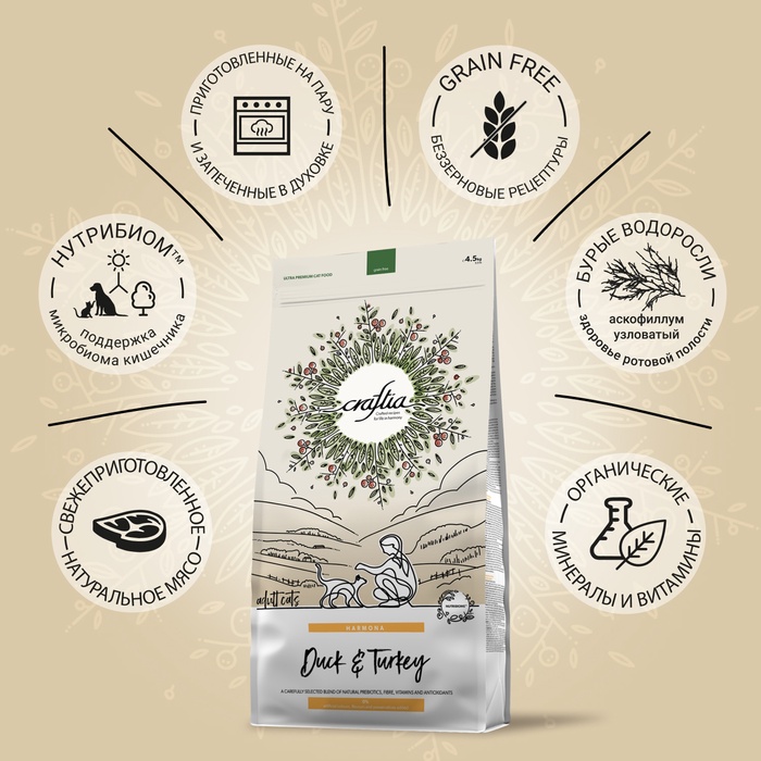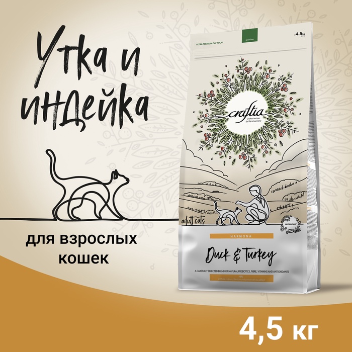 Стабильность на каждый день Сухой корм для взрослых кошек с уткой и индейкой, 4,5 кг — это основной рацион для кошек от 1 до 7 лет, построенный на сочетании двух видов мяса птицы. Подходит для ежедневного кормления и оправданной экономии без потери качества питания.