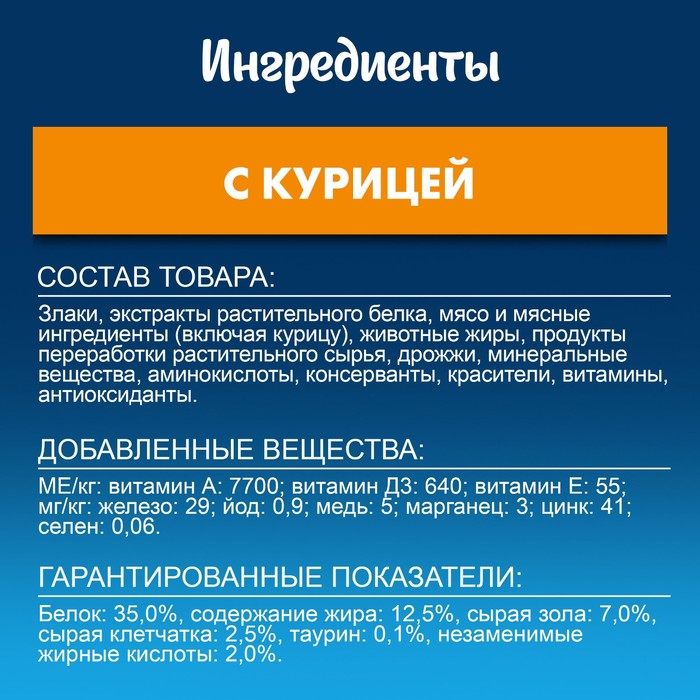 Рецептура корма сбалансирована и удовлетворяет все потребности Вашего питомца в витаминах и минеральных веществах, а также дает возможность сполна насладиться невероятным вкусом.