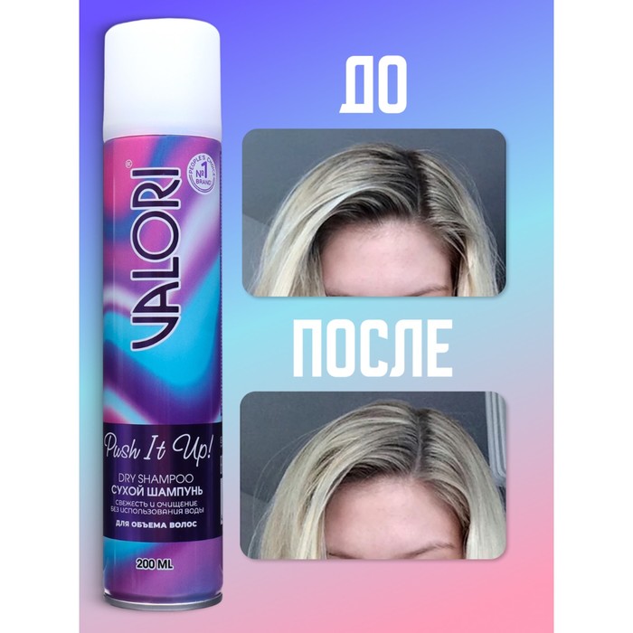 Сухой шампунь Valori Push it up – средство нового поколения, которое позволяет вернуть волосам ухоженный внешний вид и за считанные минуты восстановить объем. Инновационная формула сухого очищения придает дополнительный объем. Использование сухого шампуня Valori возвращает волосам ощущение свежести, будто их только что помыли и высушили.