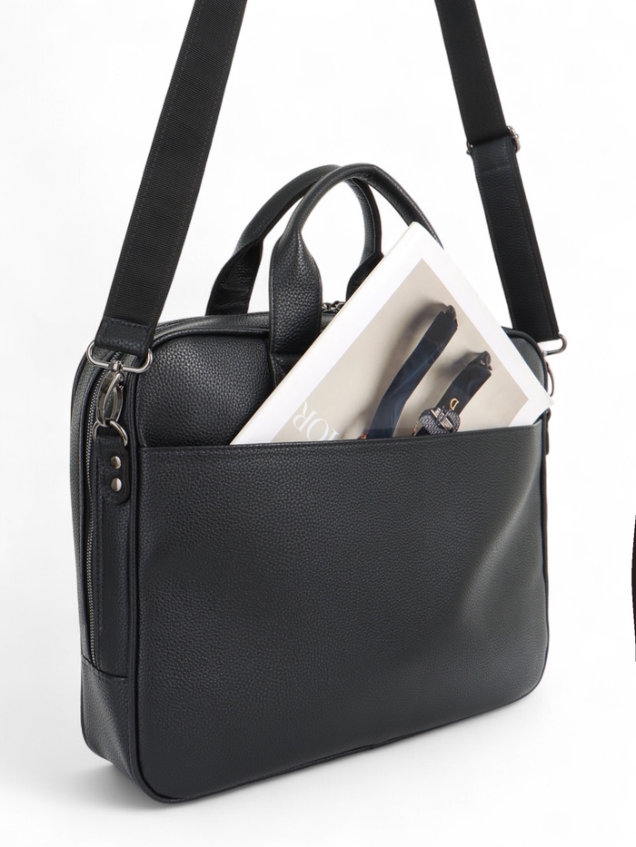 Кожаный портфель для деловых встреч - ваш надежный партнер в бизнесе. Черный цвет и строгий дизайн подчеркивают статус, а продуманная конструкция делает использование максимально удобным. Носите его в руке для важных переговоров, на плече в офисе или через плечо в поездках - он всегда сохраняет безупречный вид.