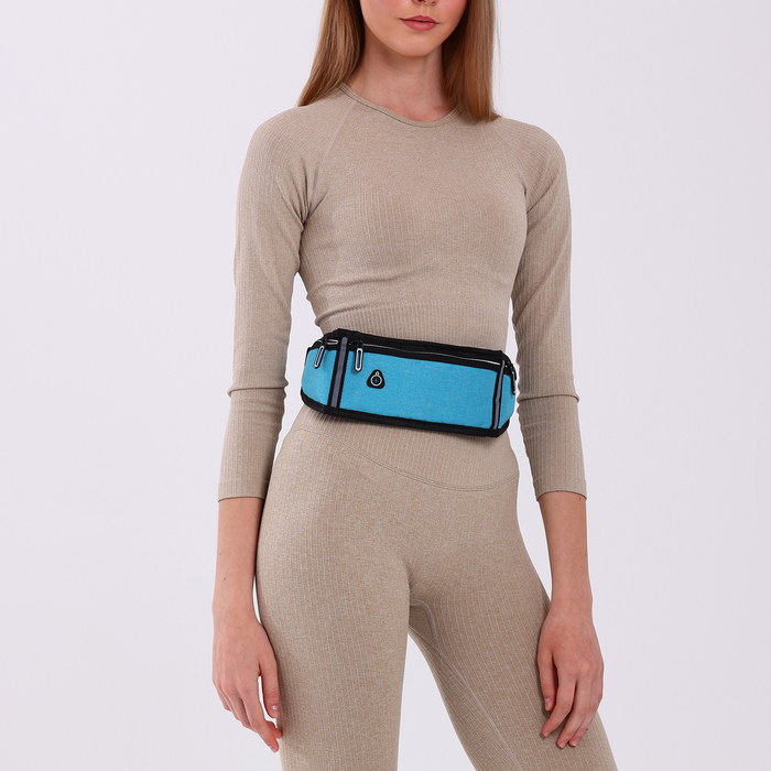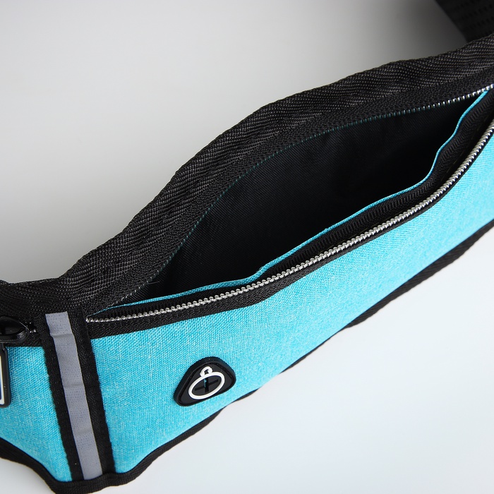 Сумка для бега, 3 отдела на молниях, светоотражающие элементы, отверстие для наушников, 50×0.1×11 см, голубая