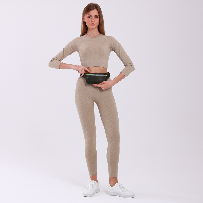 Сумка для бега на пояс, со светоотражающими элементами, с отверстием для наушников, 24×0.3×10 см, хаки