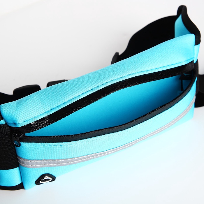 Сумка для бега на пояс, со светоотражающими элементами, с отверстием для наушников, с креплением для бутылки, 24×1×10 см, голубая