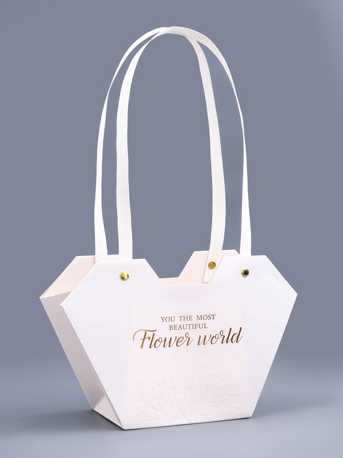 Размеры сумки 23х15х9 см делают её оптимальной для размещения среднего количества цветов, будь то розы, тюльпаны или любые другие любимые растения. Тиснение с надписью "Самой прекрасной" добавляет сумке особый шарм и делает её идеальным подарком для близкого человека.