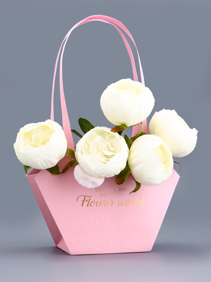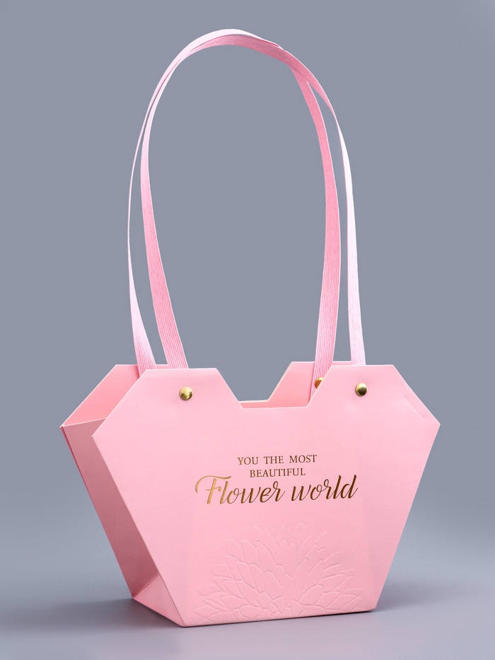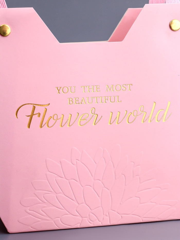 Размеры сумки 23х15х9 см делают её оптимальной для размещения среднего количества цветов, будь то розы, тюльпаны или любые другие любимые растения. Тиснение с надписью "Самой прекрасной" добавляет сумке особый шарм и делает её идеальным подарком для близкого человека.