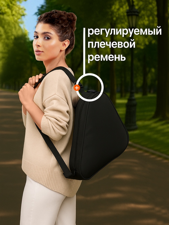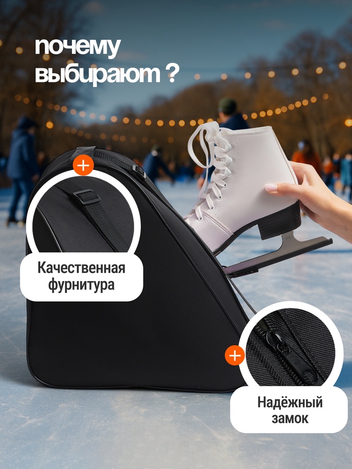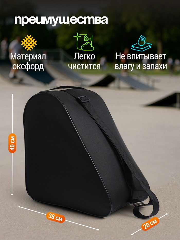 Вместительная и удобная сумка для коньков и роликовых коньков пригодится всем, кто на них катается. Модель закрывается на молнию и оснащена регулируемым по длине ремнём.