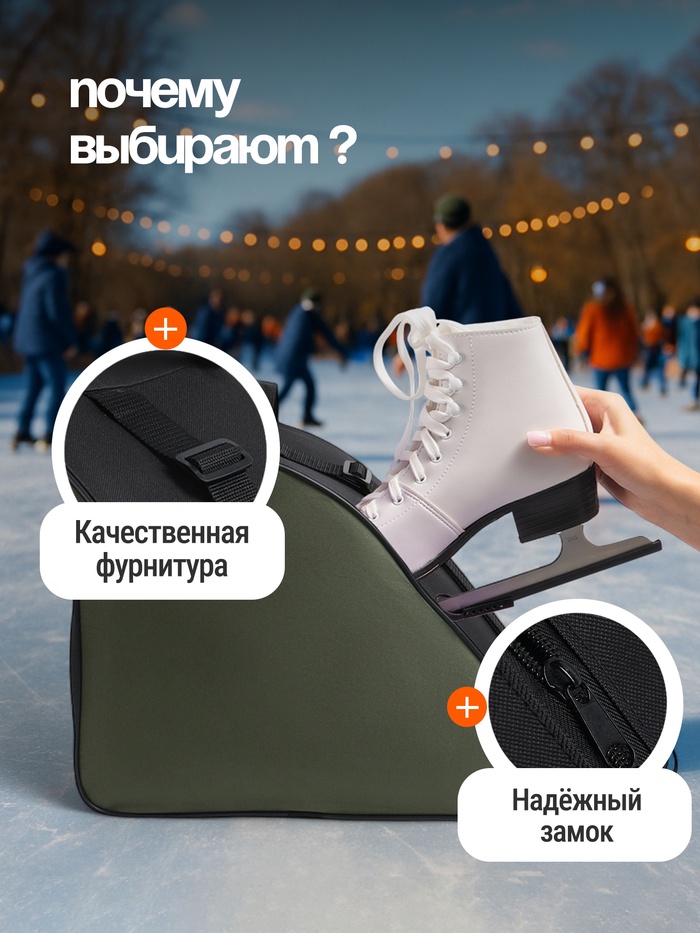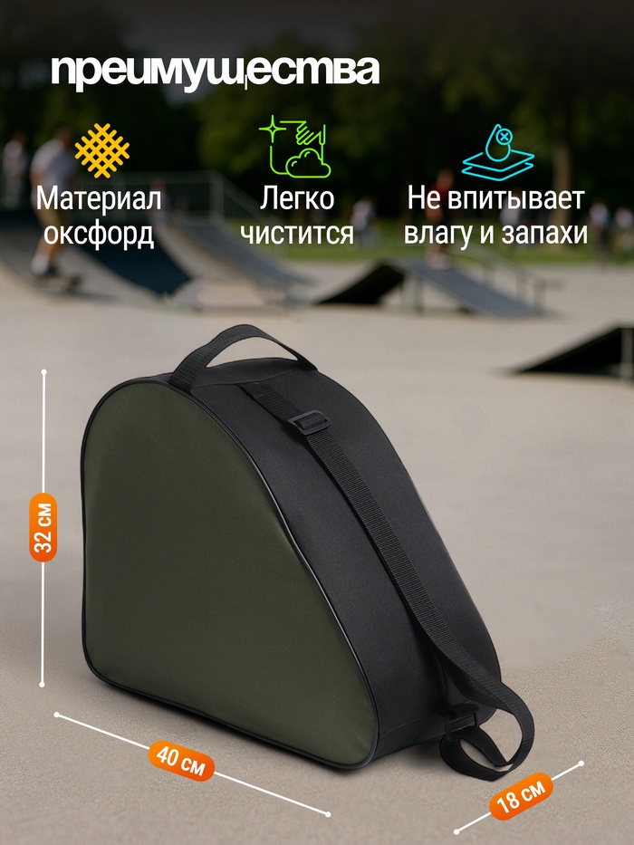 Вместительная и удобная сумка для коньков и роликовых коньков пригодится всем, кто на них катается. Модель закрывается на молнию и оснащена регулируемым по длине ремнём.