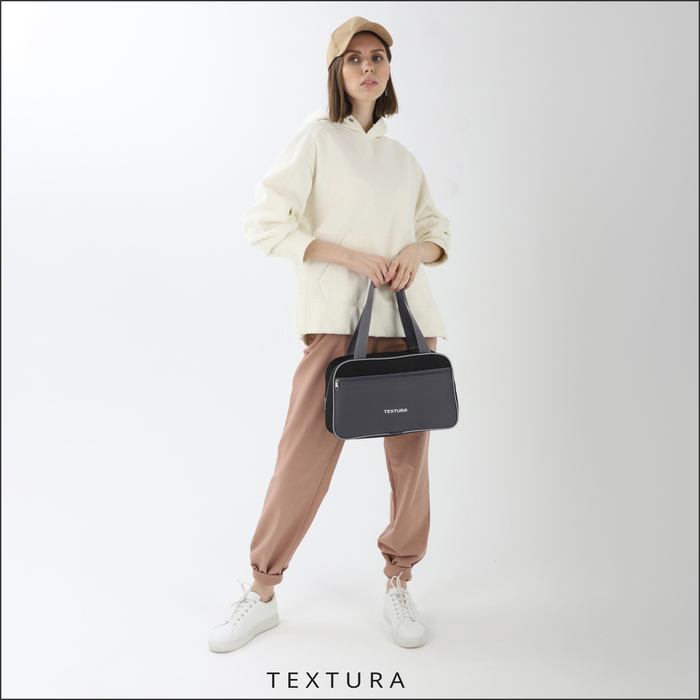 Сумка для обуви TEXTURA, на молнии наружный карман, размер 33×10×20 см, чёрная/серая