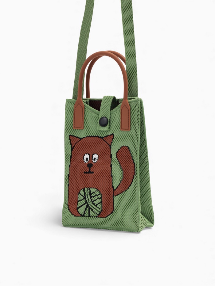 Зелёная сумочка с котом для телефона становится верным спутником юных модниц и взрослых женщин. Выразительный рисунок в виде кошки на этой компактной модели обращает внимание и добавляет нотку игривости вашему образу. С такой сумочкой даже обычные прогулки становятся особенными.
