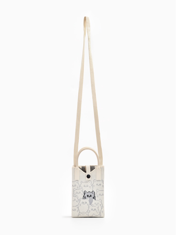 Сумочка с изображением котиков на длинном ремне станет очаровательным аксессуаром для любительниц кошек. Компактная и легкая, она выполнена в классическом белом цвете из прочного полиэстера. Это практичное решение для тех, кто хочет держать телефон под рукой, без лишних усилий.