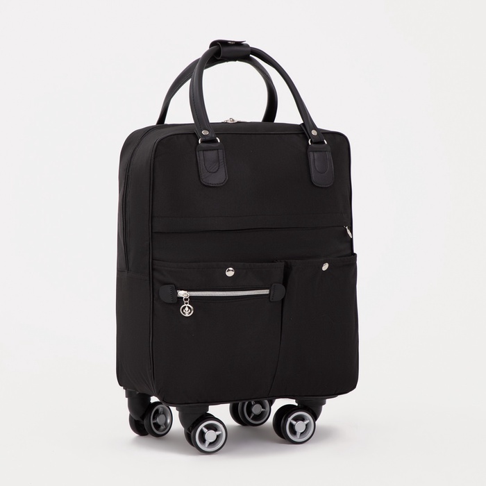 Дорожная сумка на колесах в классическом черном цвете - идеальный выбор для тех, кто ценит удобство и стиль. Компактные размеры (длина 35 см, высота 40 см, ширина 15 см) обеспечивают легкость транспортировки, а основное отделение на молнии и четыре наружных кармана позволяют рационально разместить вещи. Универсальная модель подходит для мужчин и женщин, изготовлена из прочного полиэстера. С 4 пластиковыми колесами, сумка гарантирует плавное перемещение.