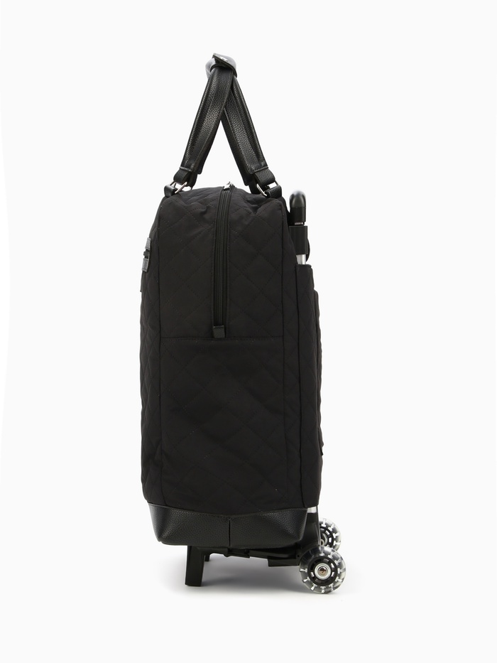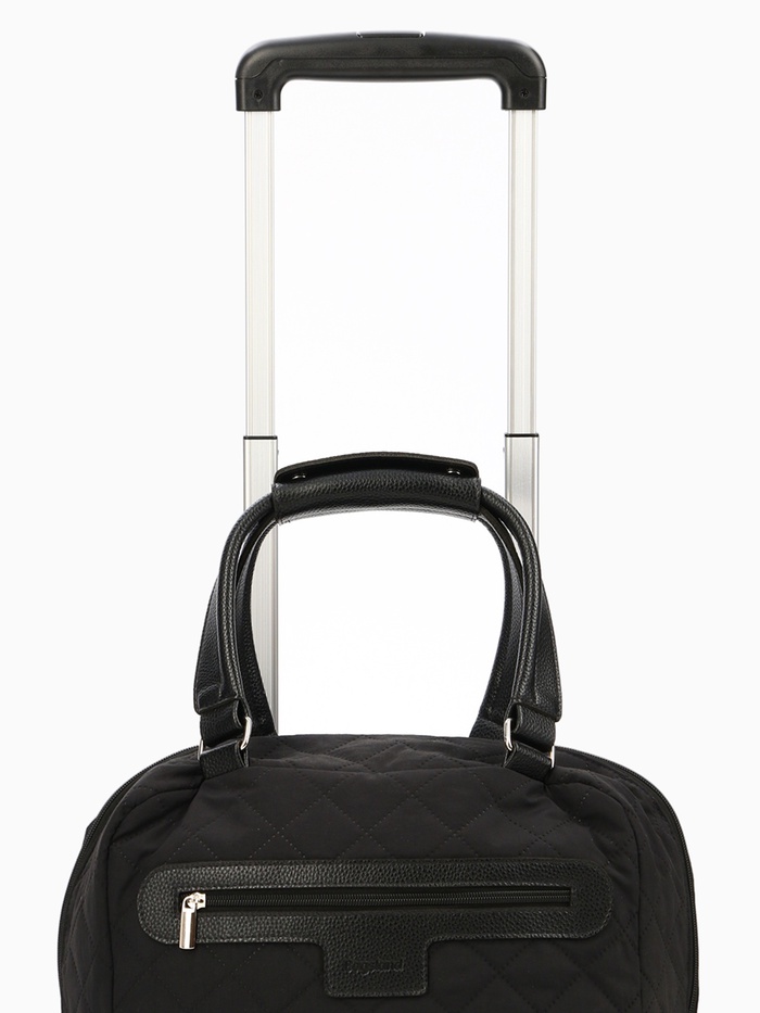 Эта элегантная дорожная сумка на колёсах станет вашим лучшим компаньоном в любом путешествии. В её прочный корпус из натуральной кожи и текстиля с легкостью умещается всё необходимое для краткосрочной поездки. Черный цвет и унисекс дизайн придают ей универсальный и современный вид, подходящий как мужчинам, так и женщинам. Используйте дорожную модель с двумя прочными пластиковыми колёсами для легкого перемещения и удобства в пути.