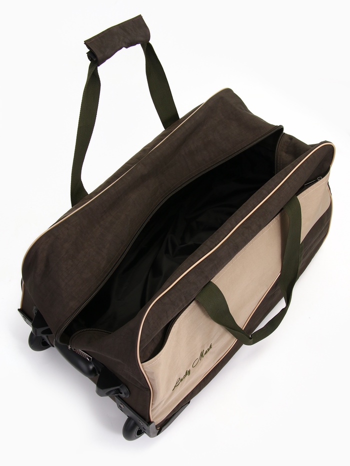 Сумка дорожная на колёсах, отдел на молнии, длинный ремень, цвет оливковый/коричневый