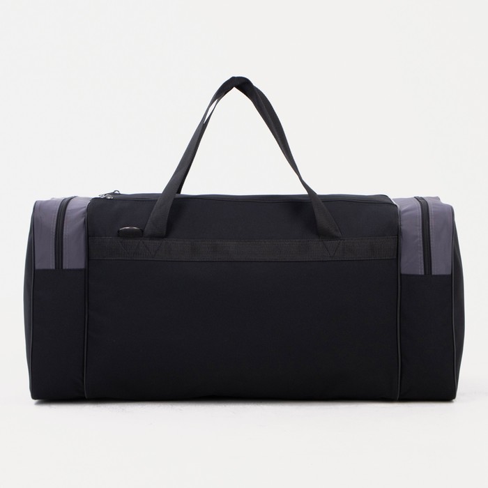Сумка дорожная на молнии, 3 наружных кармана, длинный ремень, цвет чёрный/серый