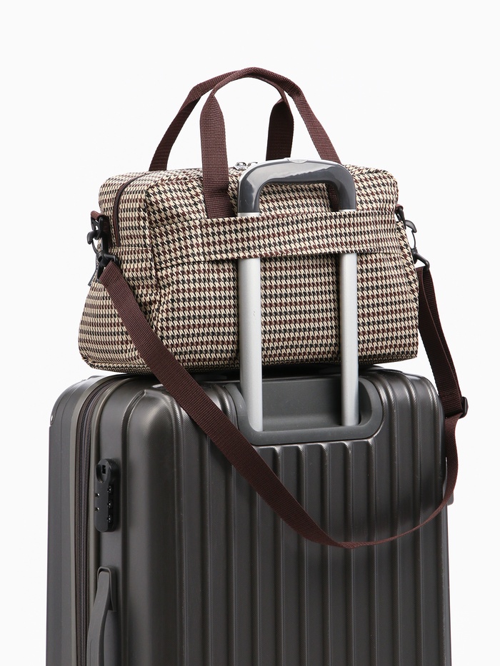 Сумка дорожная на молнии, 4 наружных кармана, держатель для чемодана, длинный ремень, бежевая, коричневая