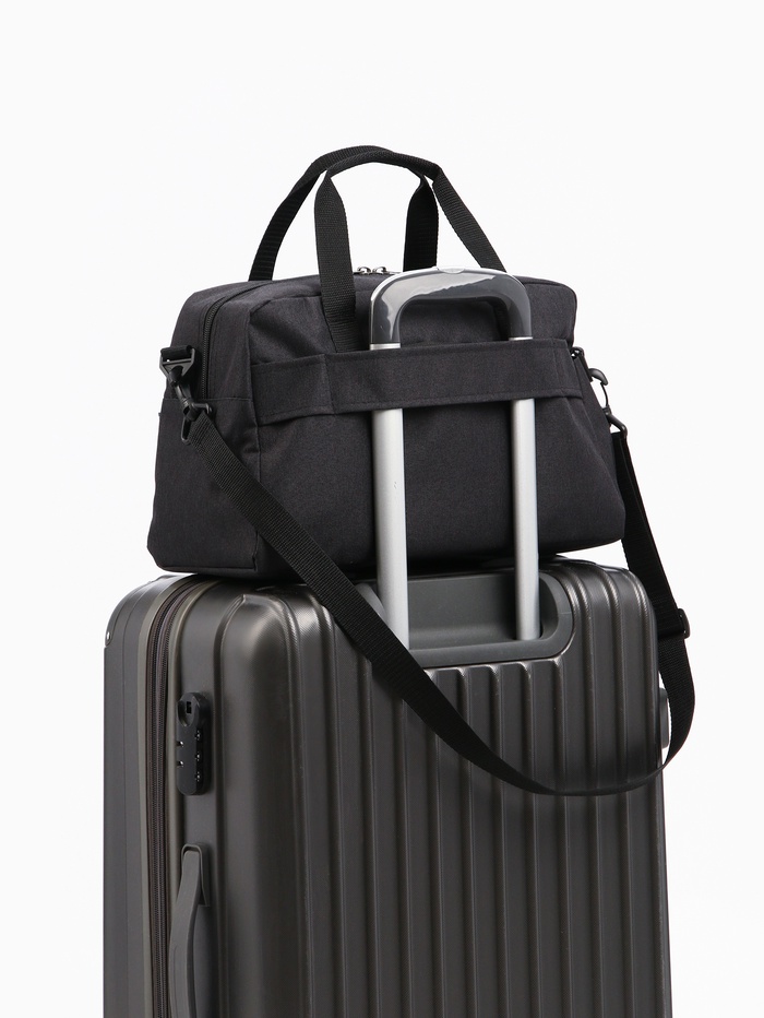 Сумка дорожная на молнии, 4 наружных кармана, держатель для чемодана, длинный ремень, чёрная