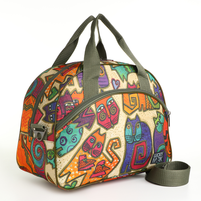 Сумка обладает длинным регулируемым ремнем для комфортной переноски, что делает её отличным выбором для активных путешественников. Цветовое решение в бежевом и разноцветном варианте придаёт изделию универсальный и стильный вид, который подходит как для деловых поездок, так и для отдыха.