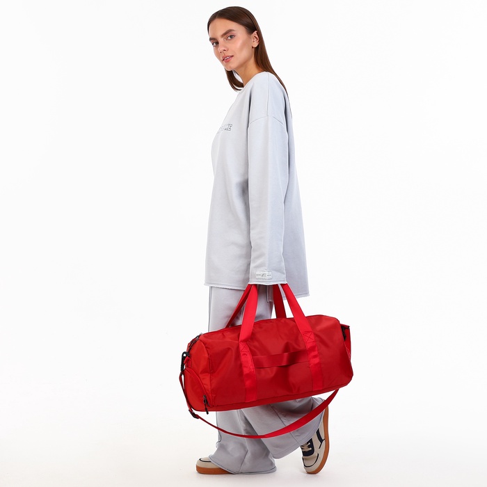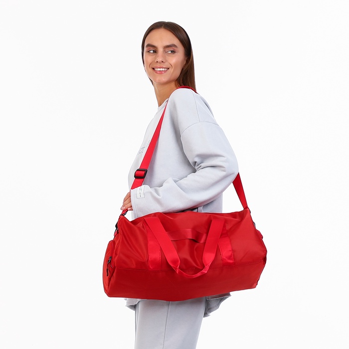Сумка дорожная на молнии, отдел для обуви, наружный карман, держатель для чемодана, длинный ремень, красная