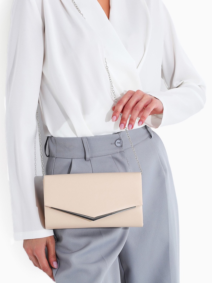 - Элегантный дизайн и удобство: Клатч выполнен из качественной искусственной кожи и дополнен серебряной фурнитурой. Нейтральный бежевый цвет сочетается с любыми нарядами, предлагая множество вариантов для комбинирования.