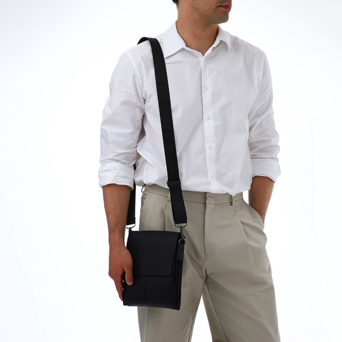 Сумка планшет мужская TEXTURA, 2 отдела на молнии, наружный карман, 20×4×23 см, чёрная