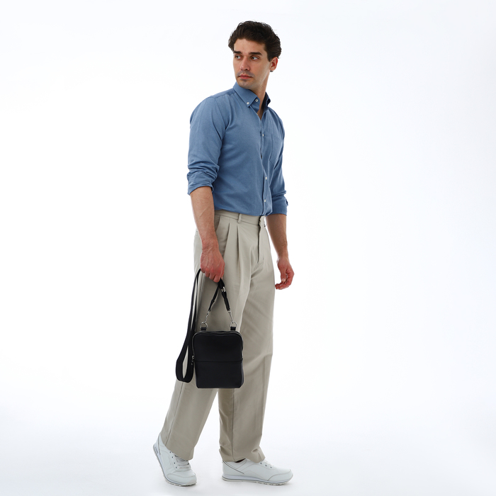 Мужская сумка с длинным ремнём и практичной молнией станет идеальным спутником в повседневной жизни. Она выполнена из прочного материала, обладает оптимальным размером и подходит для мужчин, ценящих удобство и стиль. Универсальный цвет легко сочетается с любым гардеробом.