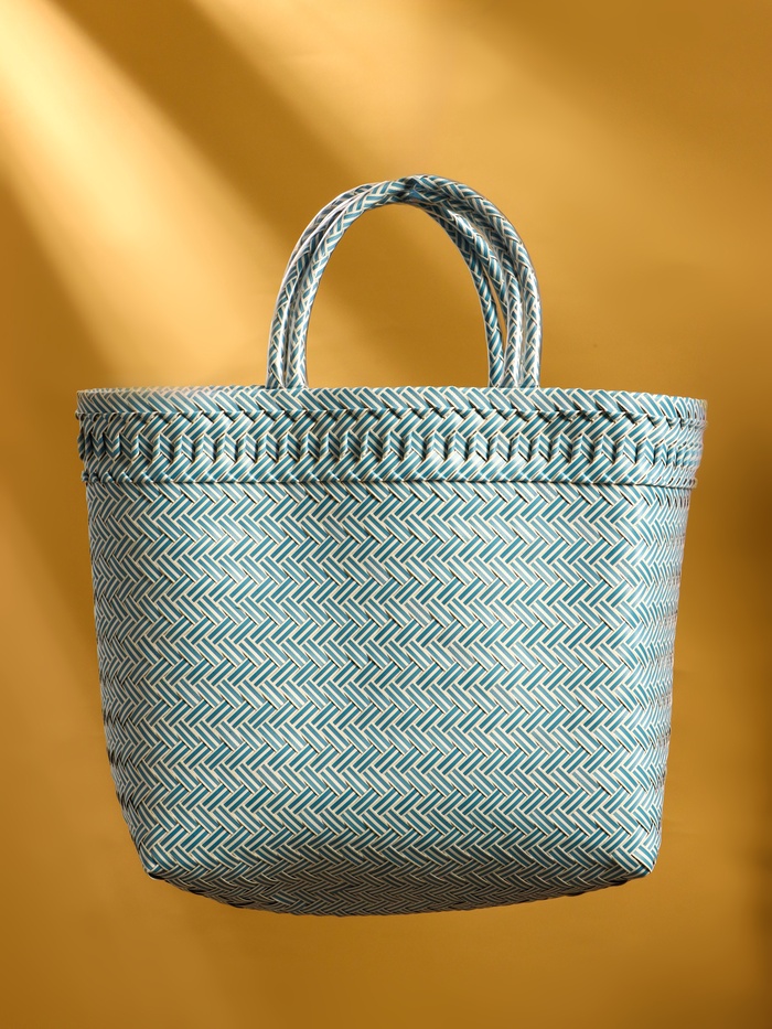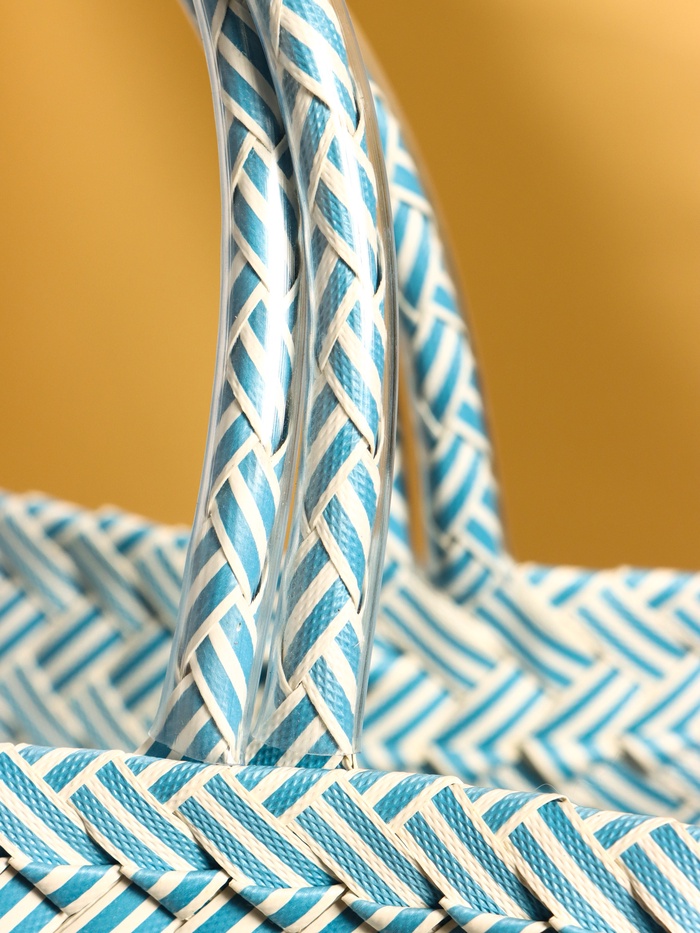 Сумка плетёная пластиковая 30х15х35 см, цв. бело-голубой