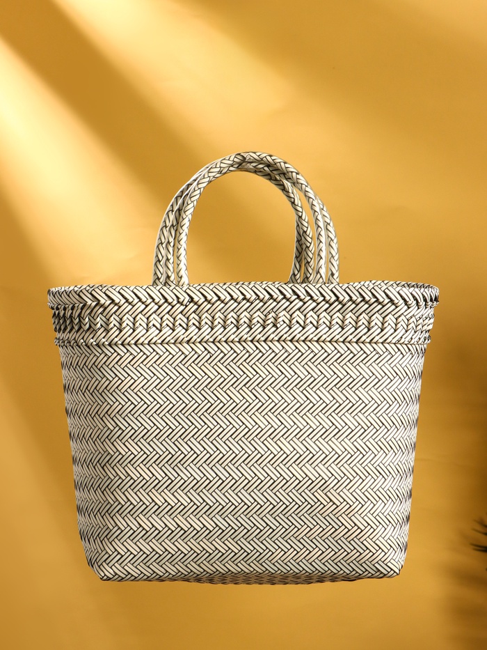 Сумка плетёная пластиковая 30х15х35 см, цв. чёрный-белый