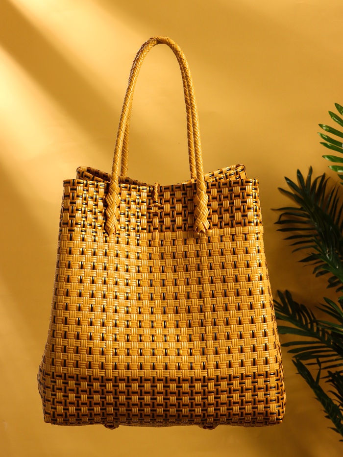 Сумка плетёная пластиковая 40х20х55 см, цв. бежевый