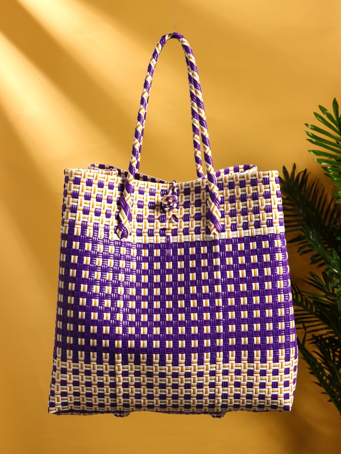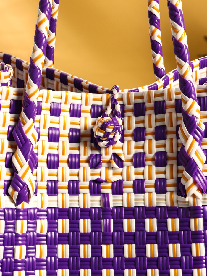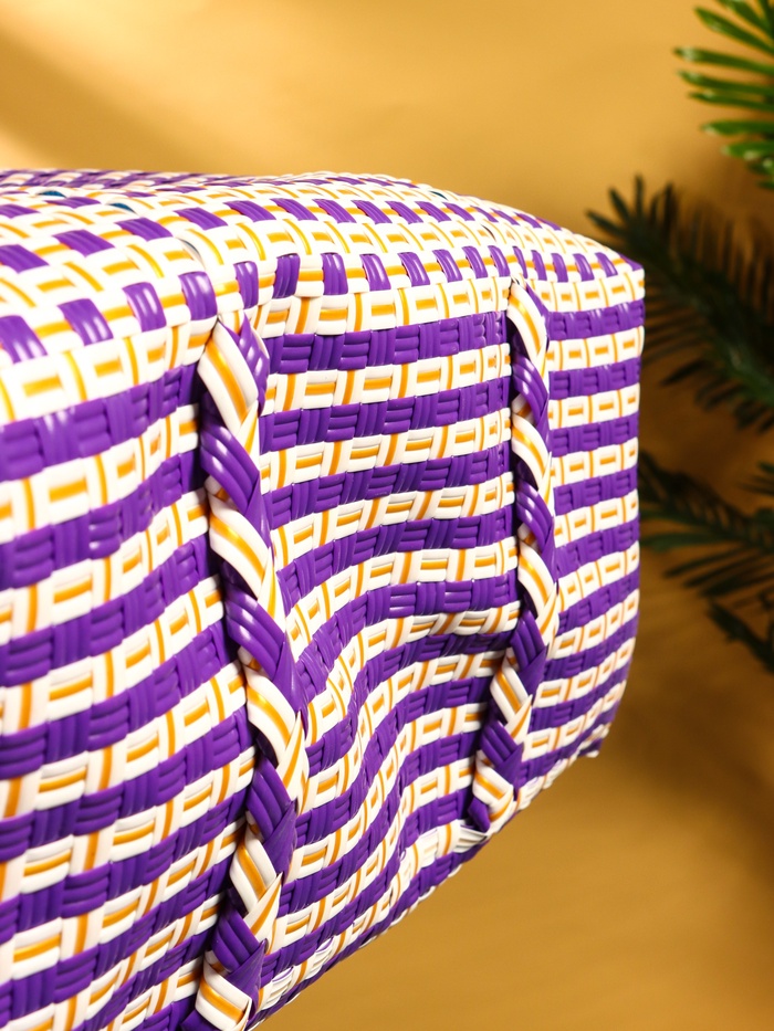 Сумка плетёная пластиковая 40х20х55 см, цв. фиолетово-белый